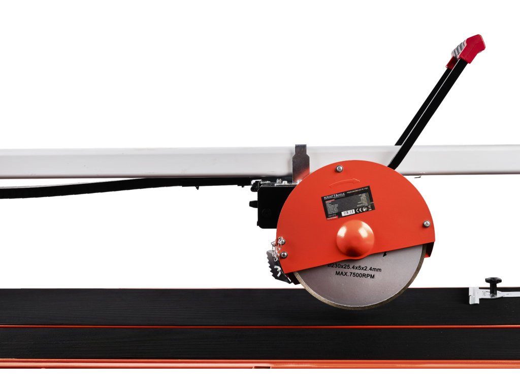Ostrze lze naklonit až do 45°, což umožňuje řezání pod úhlem. Úhloměr na pracovním stole lze otočit do libovolného úhlu od 0° do 45°, což umožňuje boční řezání. Při řezání čerpadlo dodává vodu na ostří, což prodlužuje životnost ostří a zároveň snižuje množství vznikajícího prachu. Prodlužovací držák lze použít jako dodatečnou oporu pro větší dlaždice, pokud je to potřeba.