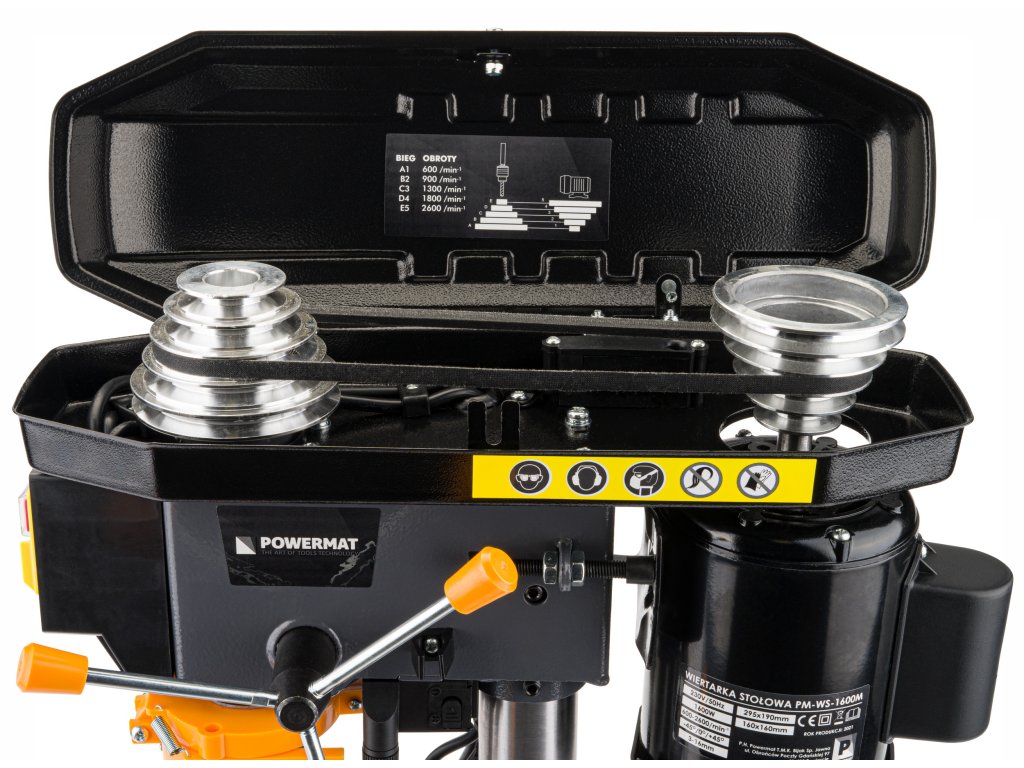 Sloupová vrtačka POWERMAT s výkonem 1600 W je nenahraditelným nástrojem pro každou dílnu.