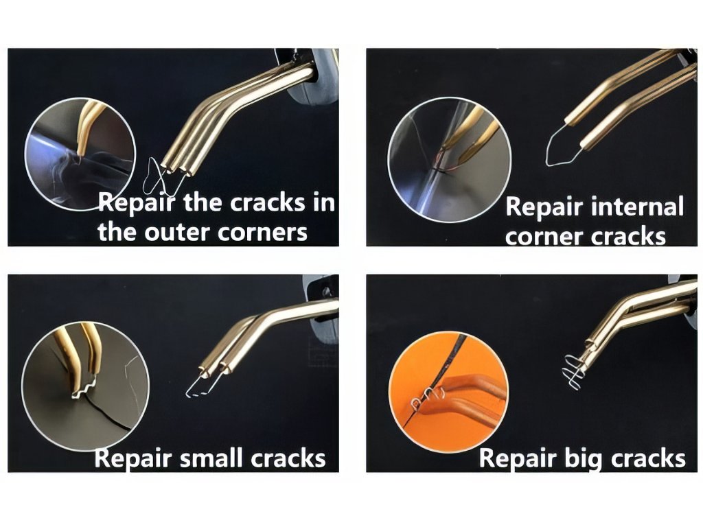 Speciálně navržené hroty pro specifické úkoly umožňují opravu jak na rovných, tak ohnutých plochách.