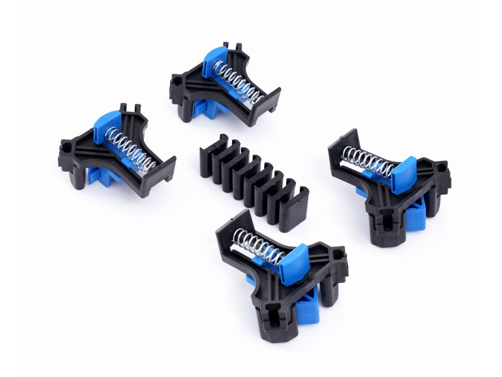 Komplet 4 ks stolářských úhlových svorek značky Kraft&Dele, model KD1194, zajišťuje rychlé a snadné upevnění desek a rámů apod. pod úhlem 90°.