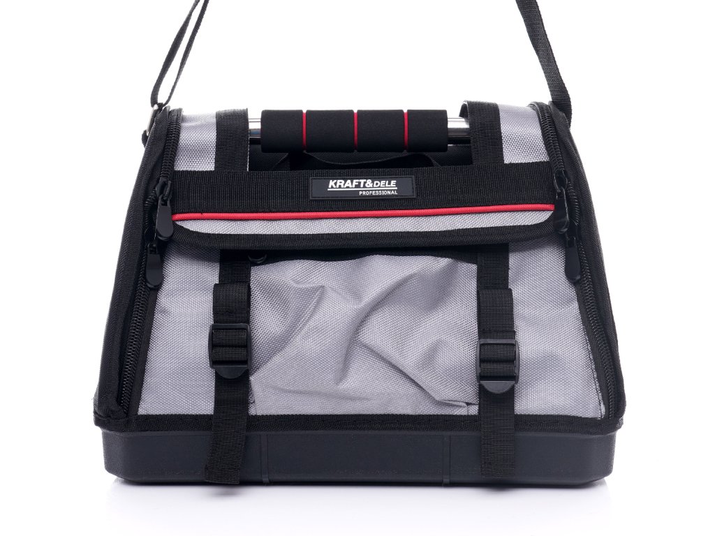 Taška na nářadí, montérská značky Kraft&Dele je ideálním organizérem pro všechny montéry (elektrikáře, instalatéry, obkladače atd.). Pevné dno pokryté kompozitovým materiálem zajišťuje odolnost a mnoho kapes přináší pořádek a rychlý přístup k potřebnému nářadí.