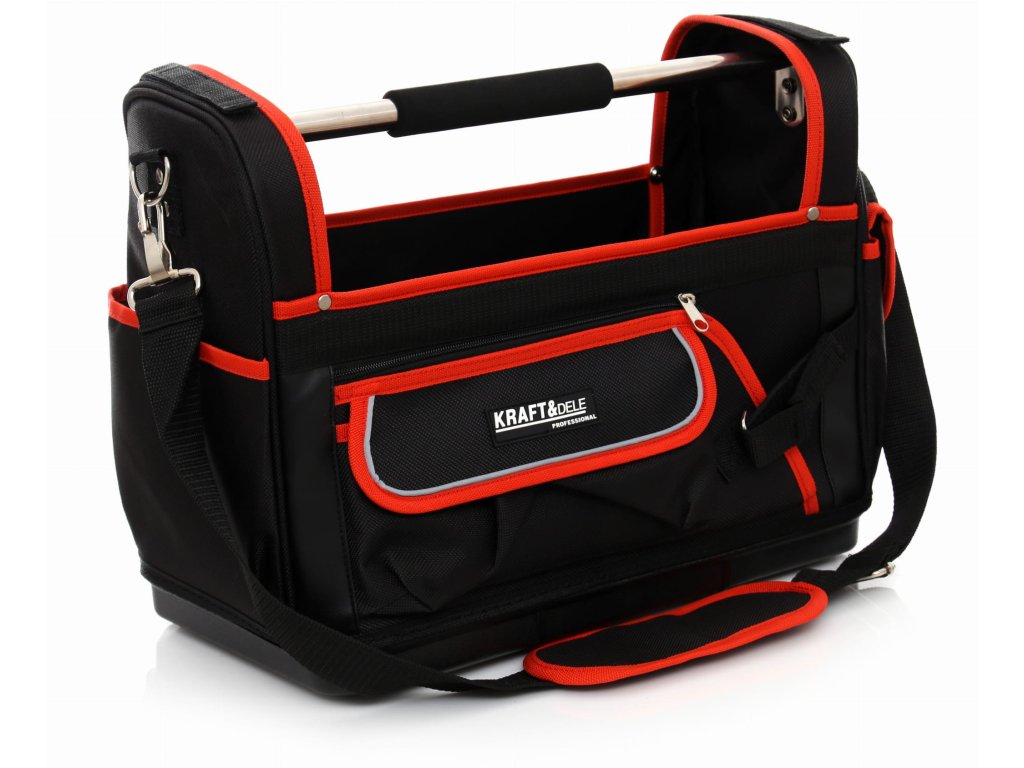 Taška na nářadí, montážní otevřená od značky Kraft&Dele je ideálním organizérem nářadí pro všechny montéry (elektrikáře, instalatéry, obkladače apod.). Pevné dno pokryté kompozitním materiálem zajišťuje odolnost, a mnoho kapes přináší pořádek a rychlý přístup k potřebným nástrojům.