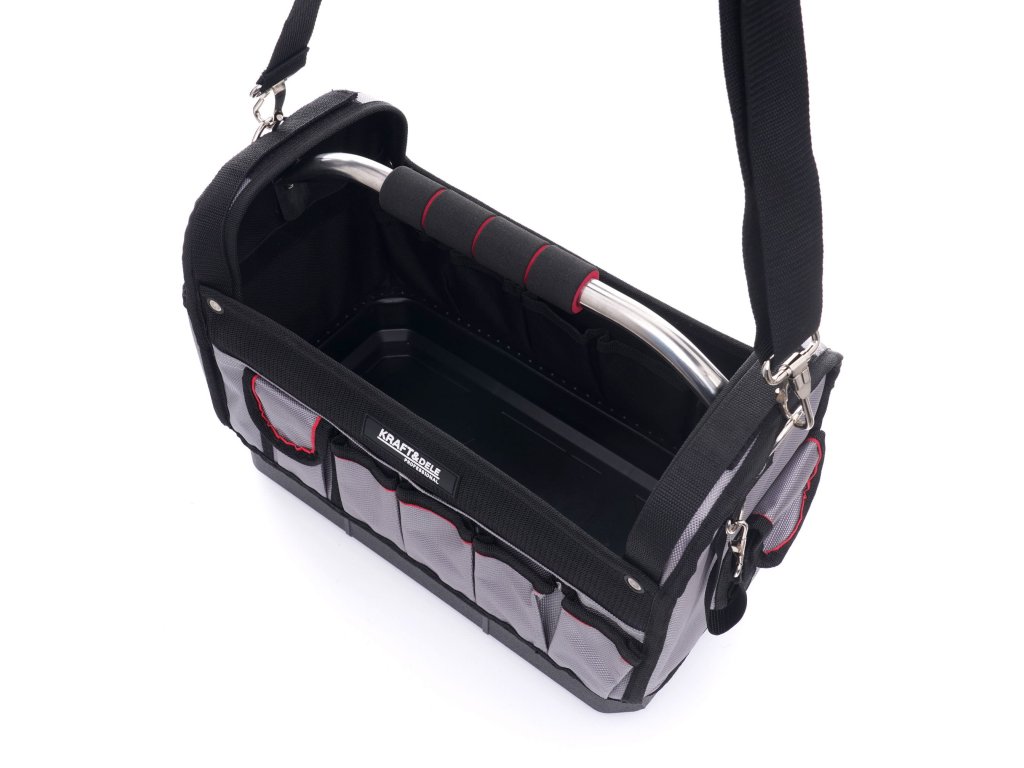 Taška na nářadí s pevnou základnou značky Kraft&Dele je ideálním organizérem nářadí pro všechny montéry (elektrikáře, instalatéry, obkladače apod.). Pevné dno potažené kompozitním materiálem zajišťuje odolnost, zatímco mnoho kapes udržuje pořádek a rychlý přístup k potřebným nástrojům.