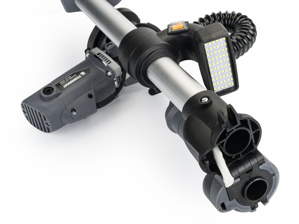 Bruska také disponuje funkci vytažitelné rukojeti, díky které snadno prodloužíte pracovní dosah a dostanete se i do těžko přístupných míst. Po vysunutí rukojeti dosahuje délku 174 cm, což usnadňuje broušení stropních ploch. Po složení má bruska délku 67 cm, což usnadňuje transport.