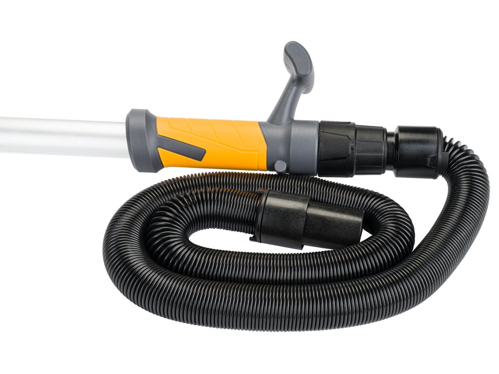 Bruska je vybavena hadicí pro odsávání prachu, kterou je třeba připojit k průmyslovému vysavači pro efektivní odstranění prachu během broušení. Ovládací knoflík umožňuje jednoduchou regulaci otáček.