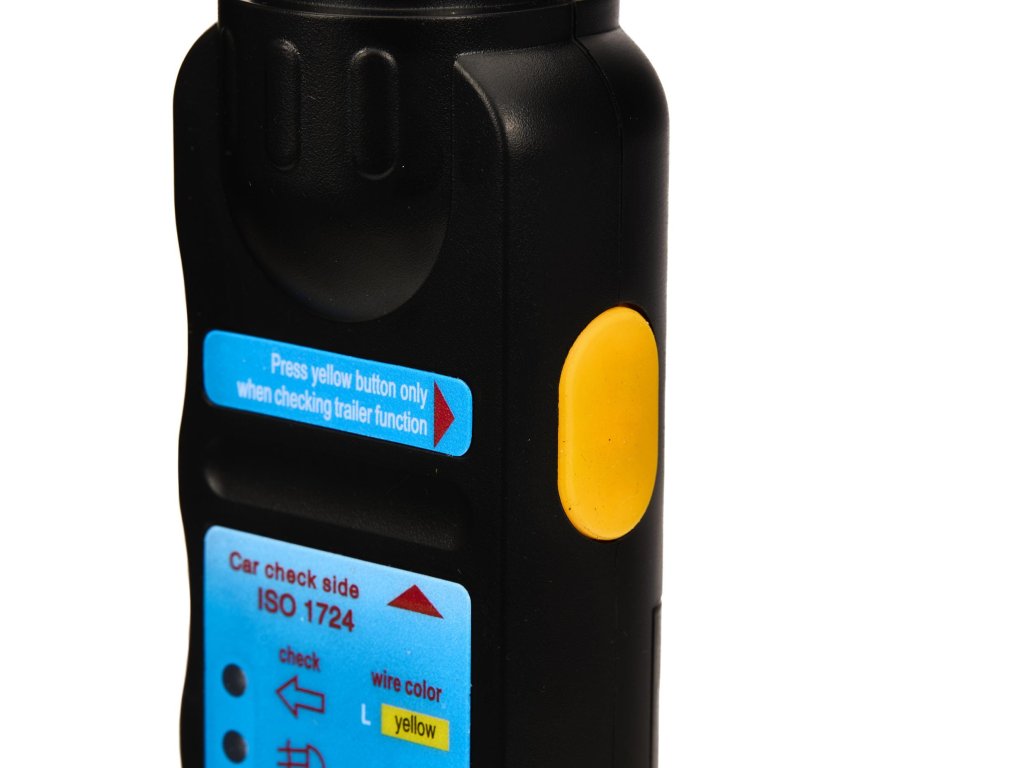 Tester zásuvky tažného zařízení s označením KD10542 značky Kraft&Dele je bezdrátový tester zásuvek, který umožňuje snadno identifikovat problémy spojené s nesprávnou nebo poruchovou funkcí osvětlení přívěsů.