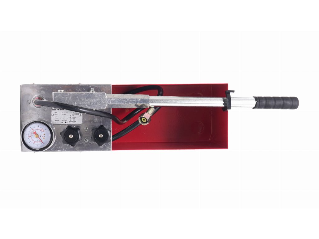 Pumpa pro tlakové zkoušky značky Kraft&Dele model KD10478 je přesný nástroj používaný k provádění tlakových zkoušek a testů těsnosti v sanitárních instalacích za použití vody nebo oleje jako testovací kapaliny při maximálním testovacím tlaku 50 bar.