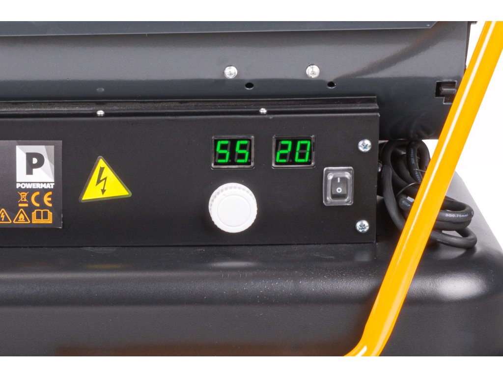 Elektronické řízení teploty zahrnuje dva displeje: jeden pro nastavení topné teploty a druhý pro zobrazení aktuální teploty okolí.
