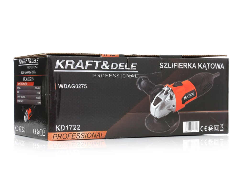 Úhlová bruska Kraft&Dele KD1722 je určena k řezání, broušení a leštění materiálů jako je kov, dřevo, beton, plasty, keramika, kámen a mnoho dalších. Je vybavena motorem s výkonem 1200 W, což umožňuje použití různých kotoučů, kartáčů a brusných disků o průměru do 125 mm. Výkon motoru umožňuje dosáhnout rychlosti otáčení až 12000 ot./min.