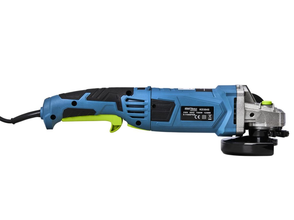 Úhlová bruska Kraft&Dele KD3045 je určena pro řezání, broušení a leštění materiálů jako dřevo, beton, plasty, keramika, kámen a mnohé další. Je vybavena motorem s výkonem 1500 W, což umožňuje použití různých kotoučů, kartáčů a brusných disků o průměru až 125 mm. Výkon motoru zajišťuje otáčky až 12000 ot/min.