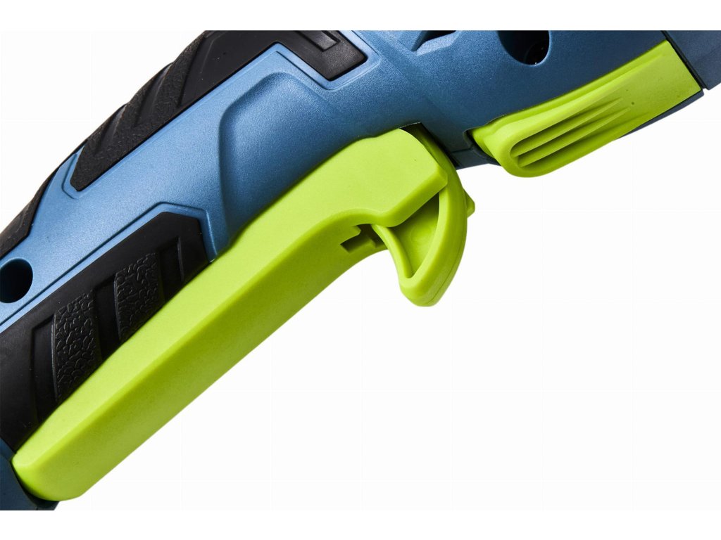 Hlavní rukojeť je vyrobena ze speciálního protiskluzového materiálu usnadňujícího držení přístroje v ruce. Tento model je vybaven navíc horní rukojetí, kterou lze namontovat na tři strany přístroje, blokací kotouče a blokací spínače.