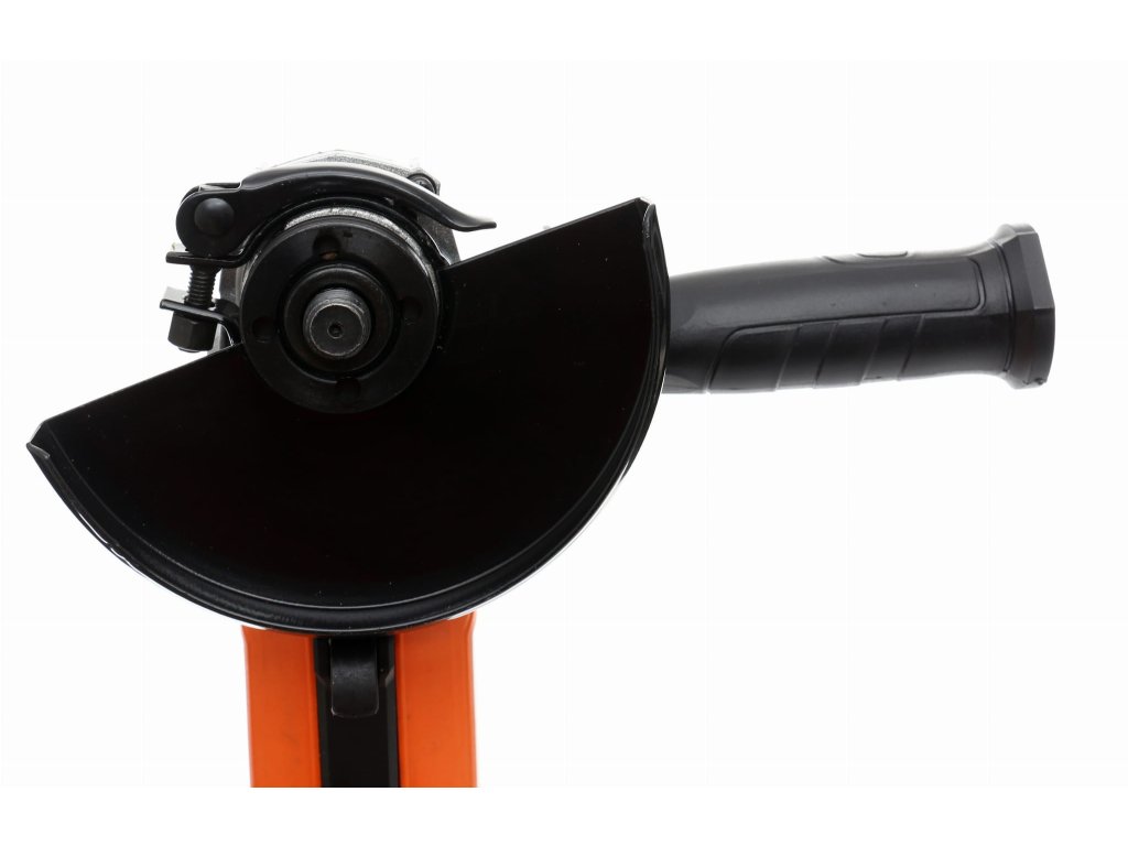 Hlavní rukojeť je vyrobena ze speciálního protiskluzového materiálu, který usnadňuje držení přístroje v ruce. Jedná se o verzi s přídavnou horní rukojetí, kterou lze namontovat ve třech směrech přístroje, s blokací řezného kotouče a blokací spínače.