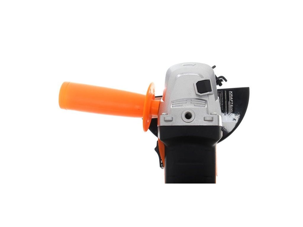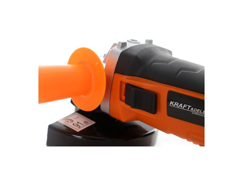 Úhlová bruska Kraft&Dele KD1554 je určena k řezání, broušení a leštění materiálů jako jsou kov, dřevo, beton, plasty, keramika, kámen a mnoho dalších. Je vybavena motorem o výkonu 900W, který umožňuje použití různých druhů kotoučů, kartáčů a brusných disků o průměru až 125mm. Výkon motoru zajišťuje nastavitelnou rychlost otáček v rozmezí 3000-12000 ot/min. Hlavní rukojeť je vyrobena ze speciálního protiskluzového materiálu pro pohodlné držení v ruce. Tento model je vybaven další horní rukojetí, kterou lze namontovat na tři strany přístroje, blokací řezného kotouče a blokací vypínače.