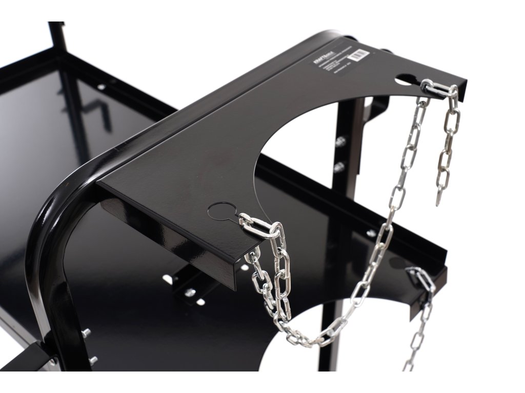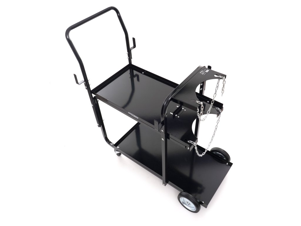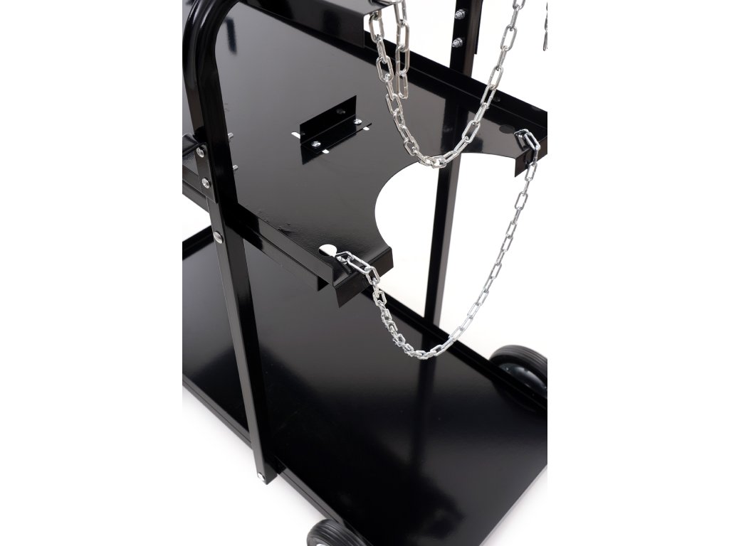 Větší kola vzadu a menší vpředu umožňují snadnou manévrovatelnost. Dvě police a police na lahev s upevňovacími řetězy, které zabezpečují stabilitu lahve. Je vybaven 4 háky pro zavěšení držáků svařovacích hořáků nebo hadic, což usnadňuje práci svářeče.