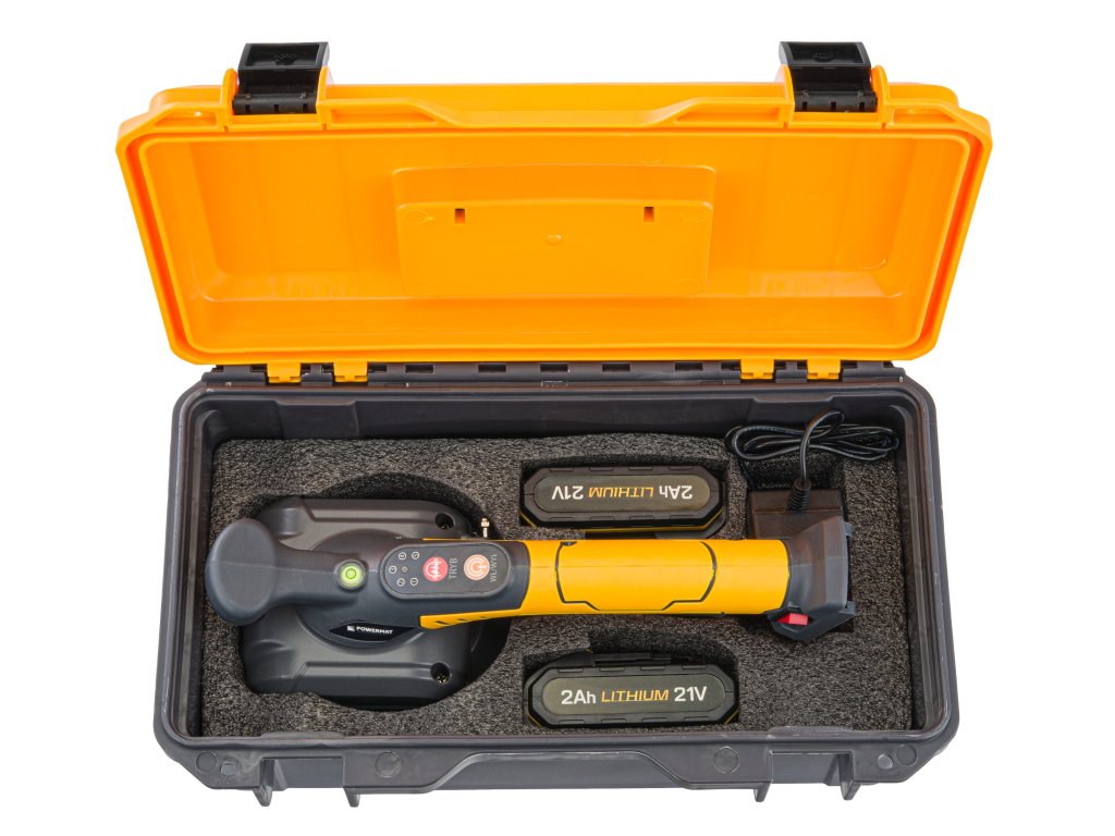 Přísavka PM-APWDP-80T, poháněná lithium-iontovým akumulátorem s napětím 21V, je ideálním nástrojem pro instalaci dlaždic jak uvnitř, tak venku. Tato moderní pomůcka nahrazuje tradiční manuální techniky a pomáhá vyhnout se problémům způsobeným nepřesným rozložením lepidla pod dlaždicemi a velkými deskami. Speciální tvar a dvojitá rukojeť zajišťují optimální rovnováhu nákladu během zvedání a pokládání dlaždic, čímž usnadňují manipulaci. Ergonomicky navržené měkké vložky na rukojeti nabízí pohodlí a zajišťují bezpečné uchopení. Je kompaktní, lehká a umožňuje snadné nastavení dlaždic (možné zvednutí až 80 kg). Vibrace pomáhají eliminovat vzduchové bubliny, které by mohly způsobit praskliny mezi lepidlem a dlaždicí. Intenzita vibrací je regulována tlakem na spínač.