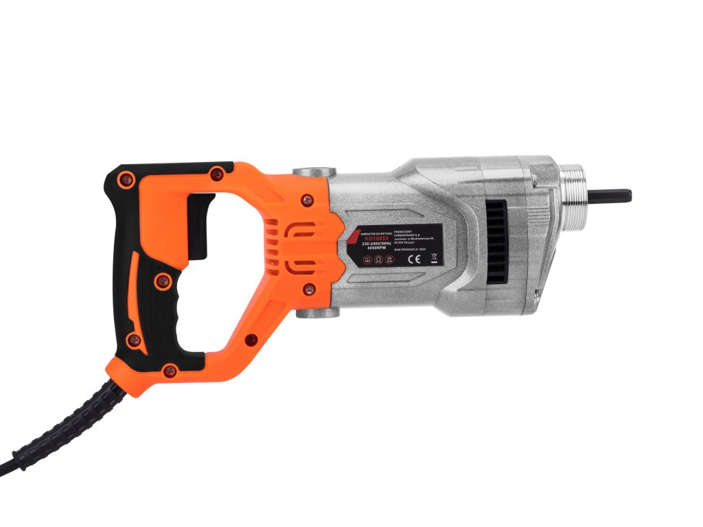 Profesionální vibrátor na zhutňování betonu značky Kraft&Dele s označením KD10855. Zařízení umožňuje eliminovat vzduchové bubliny v betonu a zároveň zvýšit hustotu a trvanlivost betonové směsi. Vysoký výkon 1300W efektivně zvládá zhutňování stropů a podlah, základových pat a vytváření základových pásů a zdí. Díky ověřené konstrukci je zařízení odolné a pevné. Maximální výkon a rychlost 4000 ot./min umožňují práci bez rizika přehřátí. Je to ideální nástroj na sjednocení čerstvého betonu a odstranění vzduchových kapes.