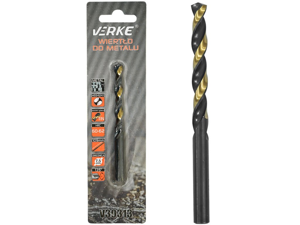 Vrták do kovu HSS s titanovou povrchovou úpravou 7,5 mm VERKE V39313