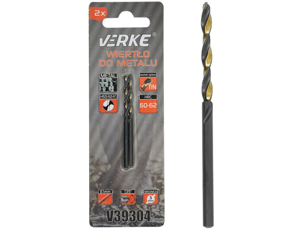 Vrták do kovu HSS s titanovým povlakem 3 mm - 2 ks. VERKE V39304