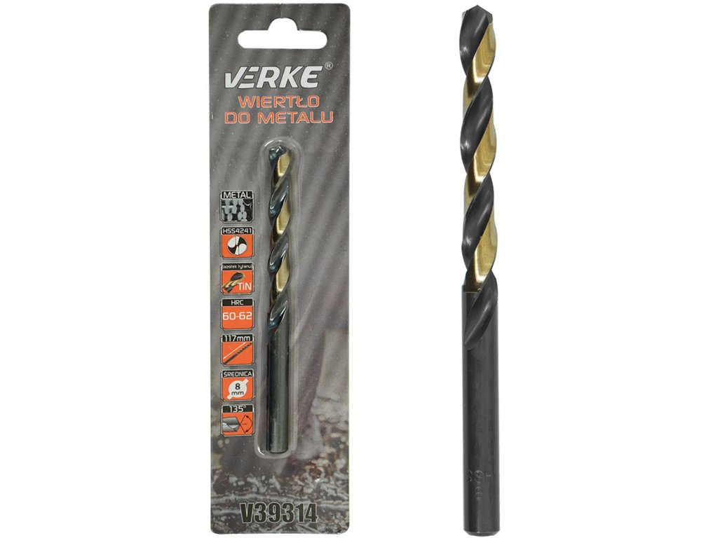 Vrták do kovu HSS s titanovým povlakem 8 mm VERKE V39314