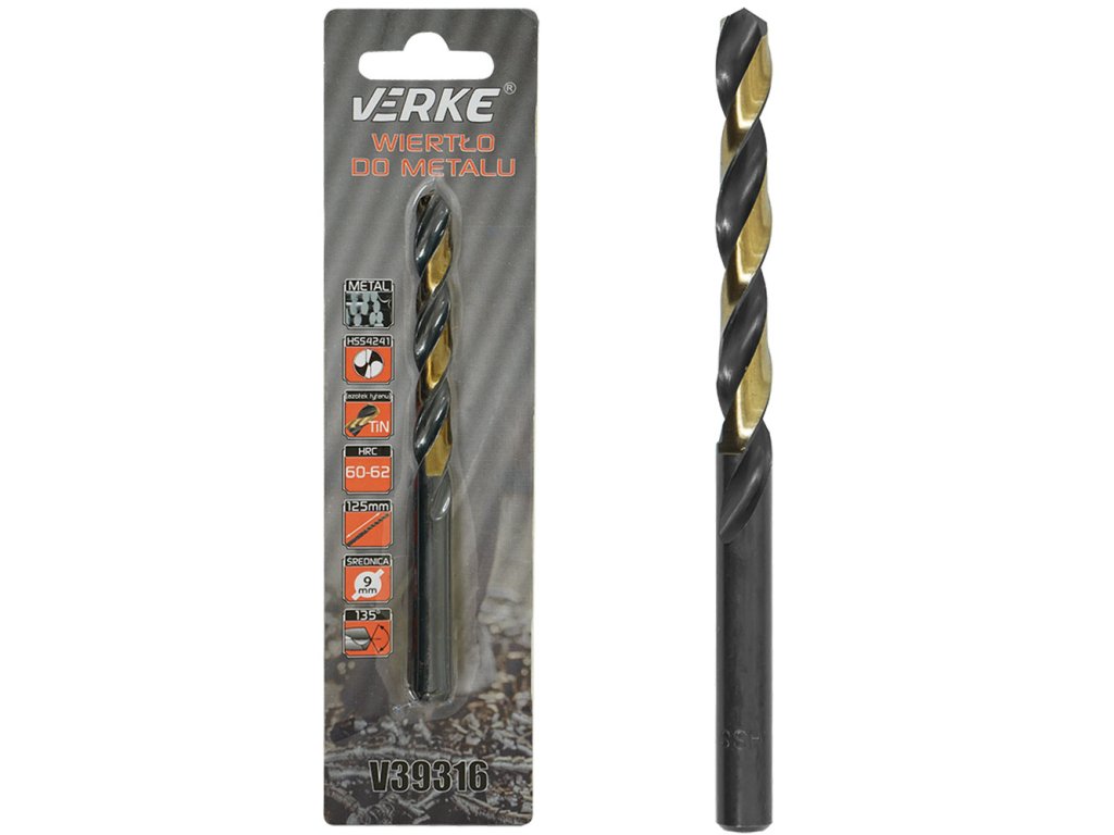 Vrták do kovu HSS s titanovým povlakem 9 mm VERKE V39316