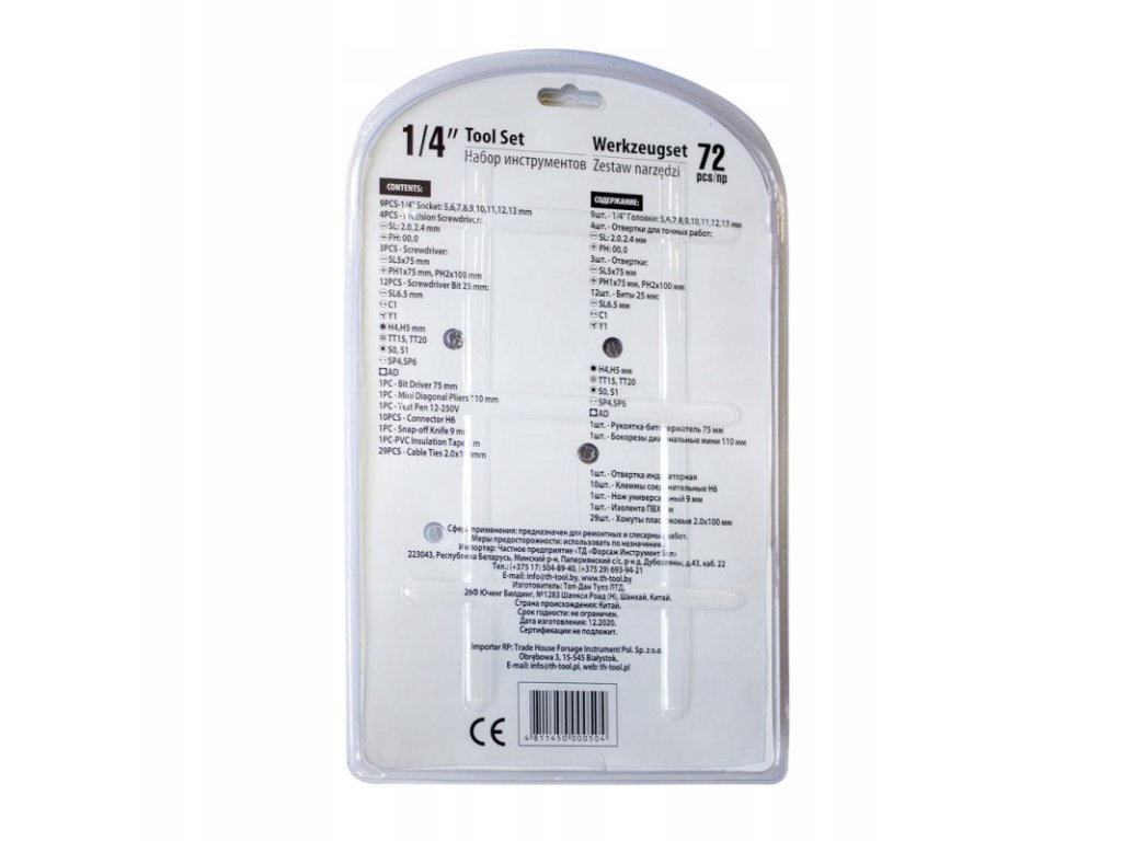 - Sada bitů 12 ks, délka 25 mm: SP4, SP6, Y1, C1, T15, T20, SL6.5, S0, S1, H4, H5; AD (adaptér pro hlavy 1/4")