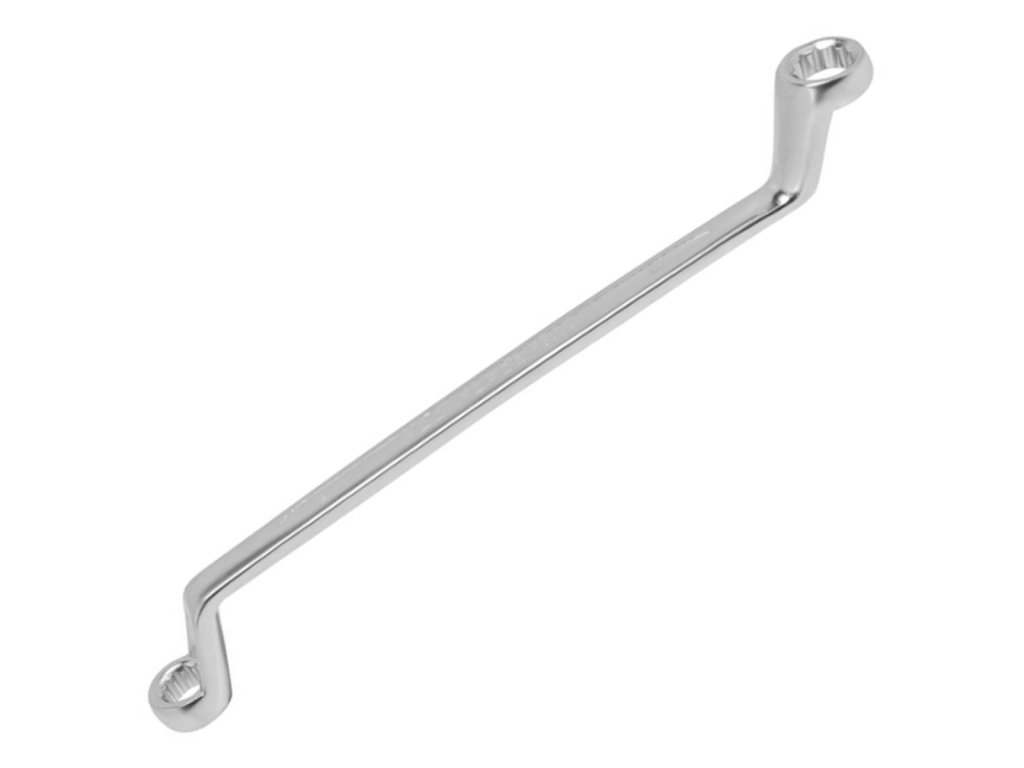 Oboustranný zahnutý očkový klíč 22 x 24 mm, 75° vyrobený z vysoce kvalitní chrom-vanadiové oceli se výborně osvědčí v profesionálních servisech a autoservisech i v domácích garážích.